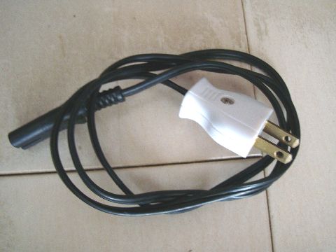ACアダプタの山から見付けた変換プラグは一式を小さい布バッグに入れていた記憶があるが見つからない、代りにACアダプタの山からこれを発見。 |