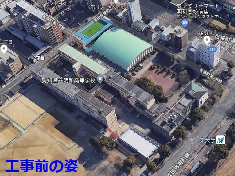 工事開始前の姿増改築工事開始前の姿をGoogleMapから、通学していた頃からは本館が無くなり広場に、西側にバス停が出来て入口も 出来ている(以前は南側しか入口はなかった)。 |