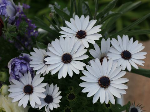 小雨の中、墓参りに3週間経過したが寒さが続いたためか、花はほとんどまだ大丈夫な状態だった。お彼岸が過ぎた後なので どの墓にも花がある状態。 |