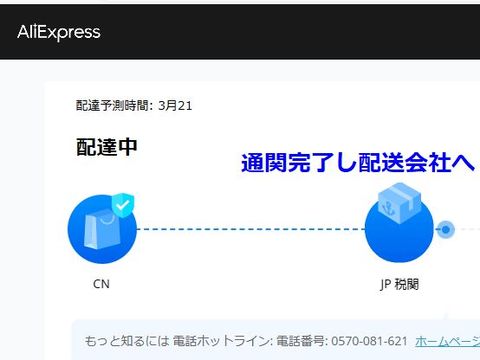 中華トランシーバは通関まで完了配達予定日21日にはほぼ間違いなく到着するだろう、楽しみ。 |