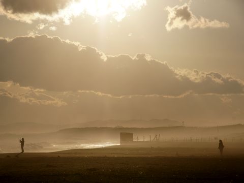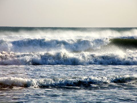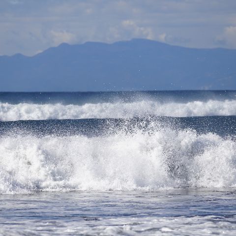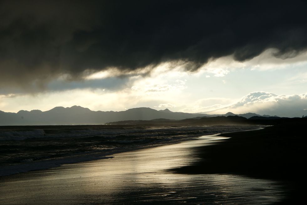 強風で強い潮風が吹き付ける海岸お昼過ぎまでの大嵐のあと太陽も出て天気は回復、でも強風は収まらず。 |