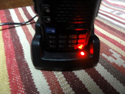 さっそく充電中さっそく充電してみる、LED赤が点灯して充電中表示に、充電完了で緑点灯に変わるはず。 |