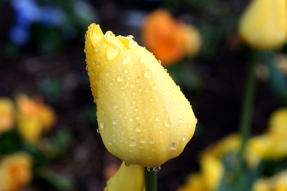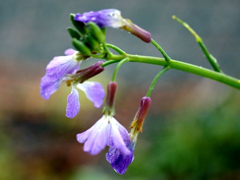 小雨の中の花たち昨日見付けたフライングの桜は数輪咲いていた、チューリップとハマダイコンの花(海岸にもある)。 |