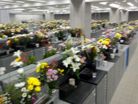 義父母の墓にも寒さのため花持ちがよく周りの墓も綺麗な状態、火災防止で3月中は線香使用禁止との掲示あり、芝生火災多発で 消防署からの通達のよう。 |