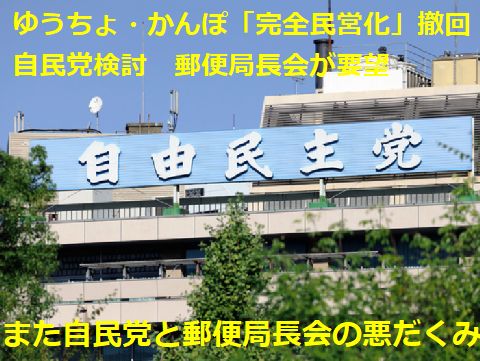 またぞろ郵便局長会の悪だくみが始まった全国に多数ある(ありすぎ?)の郵便局網の経費捻出のため日本郵政と合併させようとの悪だくみ。 郵便料金の値上げもあるが過疎の郵便局の整理はしない自分たちの利益優先がありあり、利用者の目線はゼロ? |