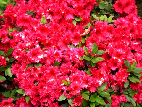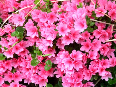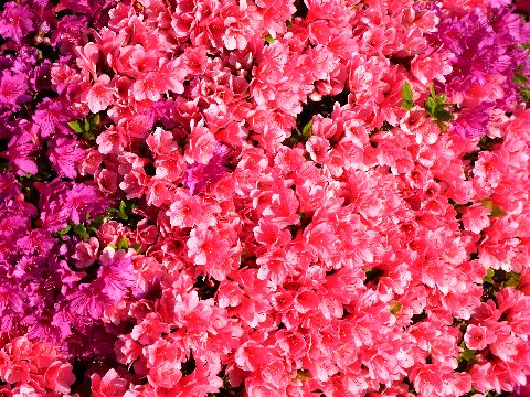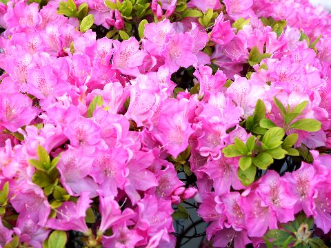 躑躅が咲いている、一部は満開に桜は葉桜になりもうお終い、続いて躑躅があちこちで咲き始めた。 |