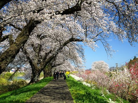 大河原駅から堤防上を歩いて船岡駅へ朝一番5時の上り電車で出発,上野>宇都宮>黒磯>新白河>郡山>白石>福島と乗り替えをして7時間31分で 大河原駅へ到着、平日でも観光客は多数。まずは町役場へ行ってマンホールカードを貰ってから堤防上をあるいて一目千本桜を 楽しみながら4km離れた船岡駅へ。 |