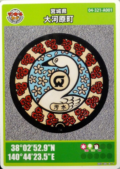 大河原街のマンホールカードを貰う設置場所は駅前の分かりやすい駅前の場所だが草が生えていてメンテはよろしくない。町役場は駅から700mほど。 |