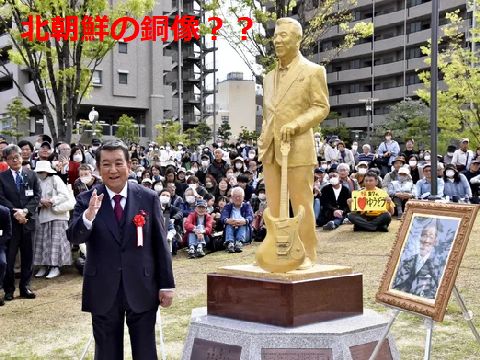 茅ケ崎はトルクメニスタン?金キラの銅像市役所前の公園に建てられた金キラの銅像、まだ生きている加山雄三のもの、もちろん本人の負担はゼロで 全額クラウドファンディングで集めた1500万円で作ったそう、まるで北朝鮮かトルクメニスタンの像のようで 印象悪い(金色は本人の強い希望だとか、悪趣味)。 |