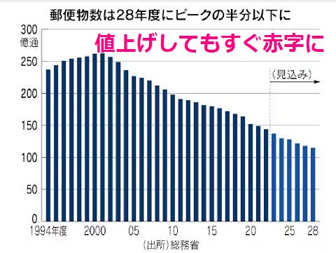 値上げに局長会の暗躍で郵便局利用辞める?郵政民営化の逆戻しを画策する郵便局長会、決まったら郵貯銀行の利用は廃止する予定、年賀状も来年限りで廃止する 積り(一部の親戚を除く)。 |