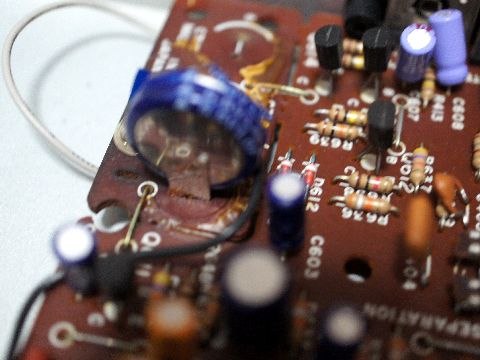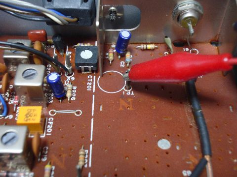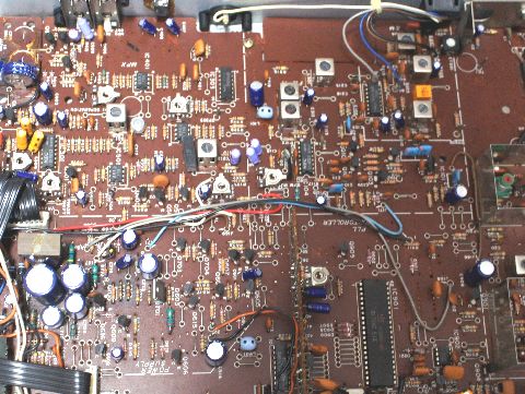あまり効果は見られず高周波段のトラッキングも効果見られず?その後の手順は略して終了。以前交換したメモリ用のスーパキャパシタ部。 高周波部は4段バリキャップの構成で3段分は空白(上位機種ST-S8と同じ基板)。 |