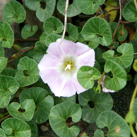 浜昼顔が咲き始めたが、少ない海岸遊歩道の周囲の工事で砂が大きく移動し、浜昼顔はそっくり消えてしまい海側でないサイドだけ一部 咲き始めた。 |