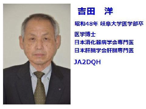 犬山市で医者をやっていた高校の同級生最近、新しい医院を建てて移転して息子に事業を譲り、医療関係者のハム団体からも脱退したよう。 息子は京都大医学部卒、優秀な息子だ、本人は名古屋大・医学部には入れず岐阜大へ行ったのだが。 |