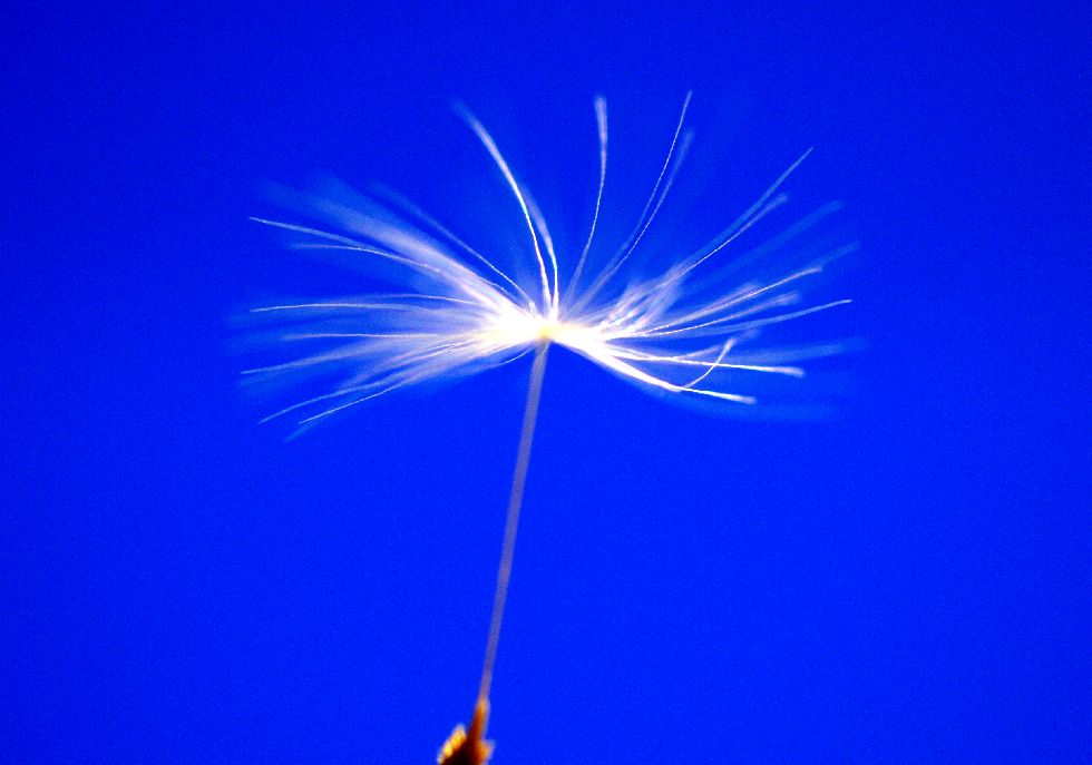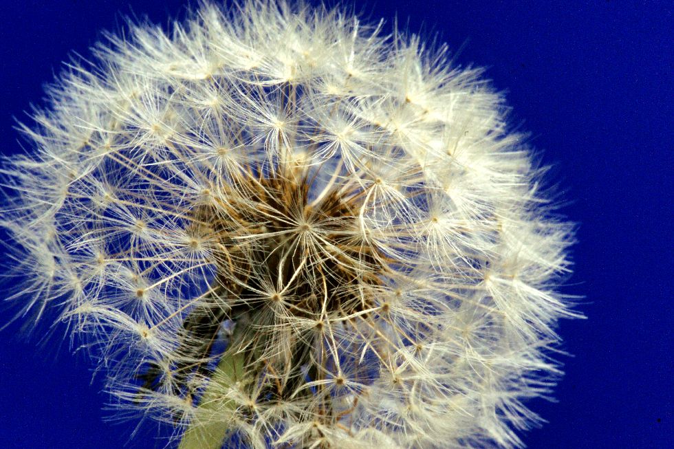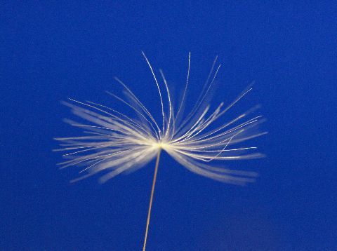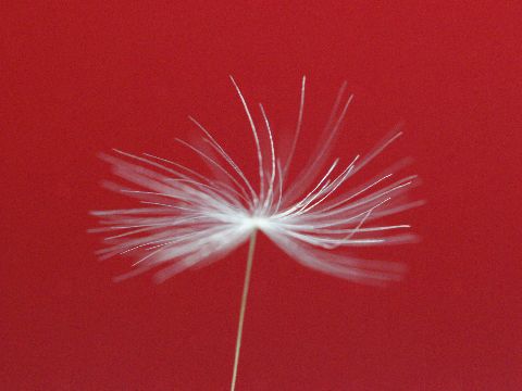 色々な花が咲いているあちこちで見つかるタンポポの綿毛を1本取ってきた。 |