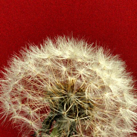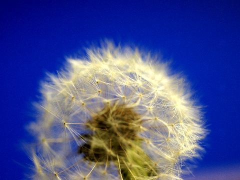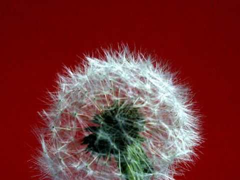 たんぽぽの綿毛、マクロで接写背景は液晶ディスプレイの画面を利用、赤と青、黒があるが黒は反射で駄目。緑と黄色も作っておこう。 |