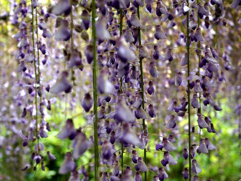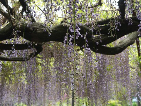 今年も端山藤園へ今年は咲くのが早くてもう茶色くなった花もある、白藤は終わってしまったよう。「今年で最後です」という張り紙が してあり、藤名人のおじいさんが亡くなって数年経過し維持が大変らしい。 |