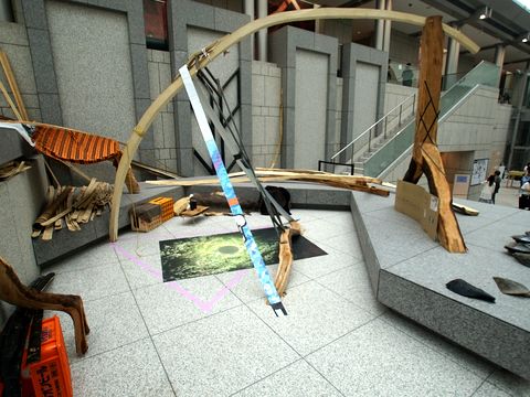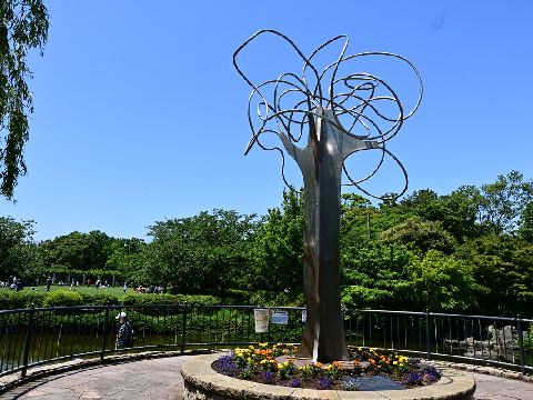 長久保公園のモニュメント熊坂兌子 サール・シュワルツ作品展で展示されていた作品模型の実物がこれ、ステンレスのパイプで出来たもの。 下がその原型となる鉄の棒材でできたもの、29日に見学の際に撮影。 |