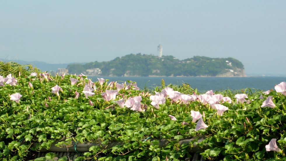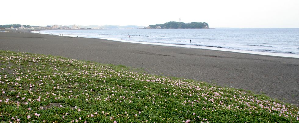 浜昼顔越しの江の島