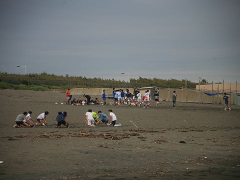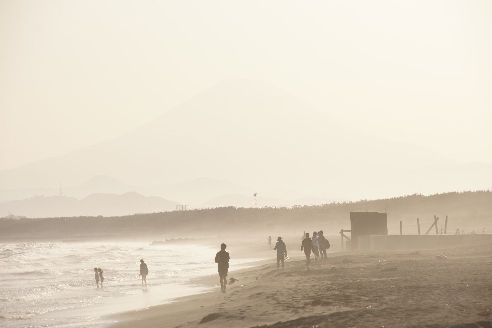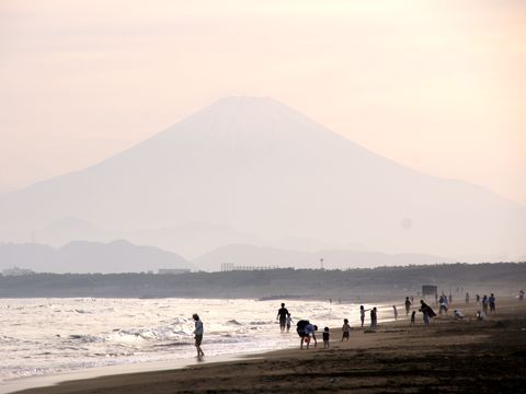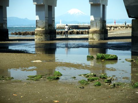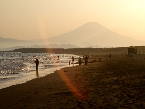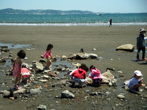 海岸には子供たちがいっぱい今日は昼前に海岸へ散歩に、近所の小学校・幼稚園や保育園の子供たちを海岸や公園の芝生で多数見かけた。 富士山は山頂以外が見えなくなってしまって残念。写っているのは近所にある英語のキッズ教室の子供たち。 |