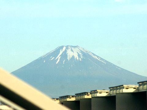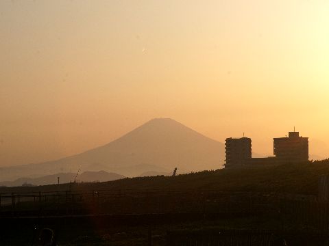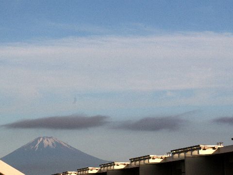 夕方に見えた富士山台風1号の接近で今夜からは雨、明日も一日天気が悪いとの予報だが意外に夕方には富士山が見られた。 |