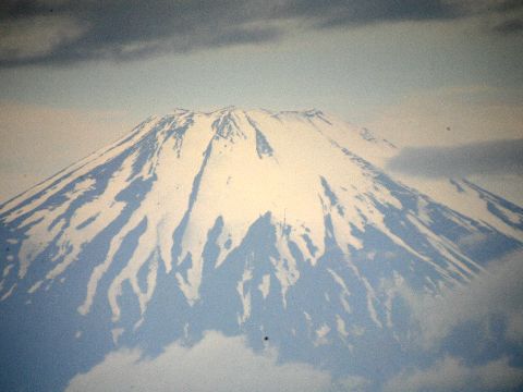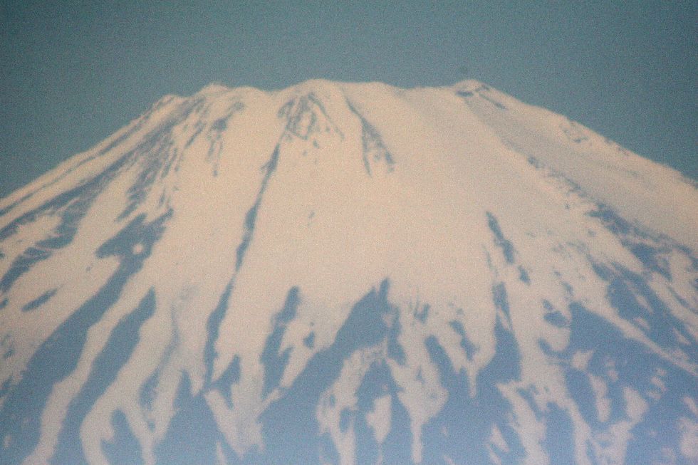 超望遠レンズで撮影した富士山(1200mm)空気の熱揺らぎもあってピントが解り難い。 |