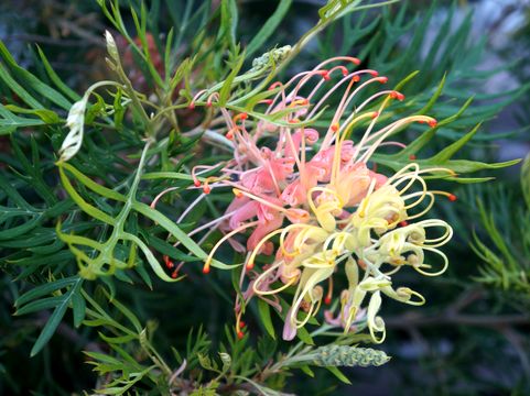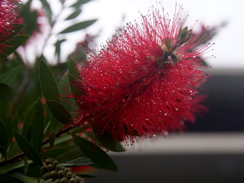 雨上りの花たち雨上がりに散歩、ブラシの木にも水滴が多数付いている。 |