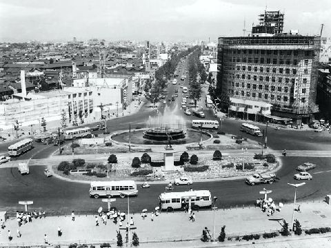 最初は名古屋駅から栄町までたった3駅、2両編成の黄色い電車が走っていた、小さな車体だが何故か標準軌。 名古屋城の再建もこの頃だった。