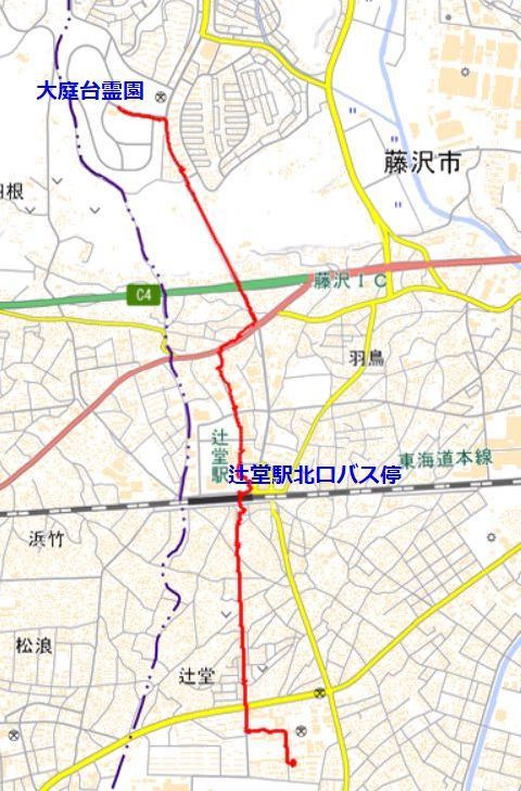 墓参りの帰路レコード霊園の中から自宅近所まで、駅北口まではバス利用、そこからは徒歩で帰宅。 移動距離は5.2km/52分。 |
