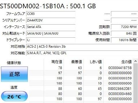 ヤフオクで落札のパソコンが届いたので動作確認とりあえず起動、Winodws10Proで認証済み、HDDは500GBだが動作時間は18000時間越えとかなり使われたよう。 起動回数からすると約4年か。 |
