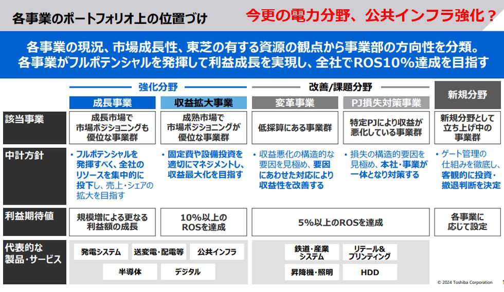 全く意味不明な東芝再建計画のプレゼン固定費削減で4000人に希望退職の一方で成長の施策は全く不透明で何も見えない、今更電力関連事業や公共インフラ事業が強化・成長とは 笑止千万としか思えない、旧東芝ビル取り壊しが近づきやっと川崎移転など今更感ばかり。次期社長と言われる池谷氏、三菱銀行から三菱自工という 経歴、本当に事業や技術の解らない人材で大丈夫? |