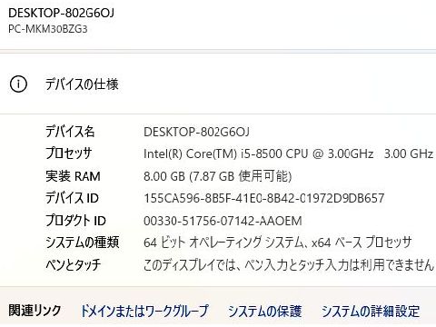 Win11用サブ機のPCを落札NEC Mate MB-3 PC-MKM30BZG3、OS Windows10 Professional 64bit(ライセンス認証済)、 CPU Intel Core i5-8500、メモリ 8GB、ストレージ HDD 500GB、ドライブ DVD-ROM 有線LAN:あり |