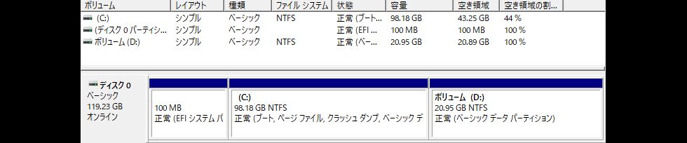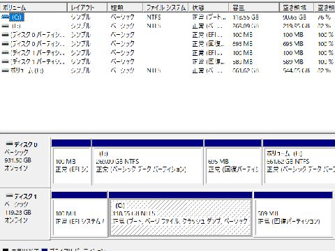 サブPC:SSDパーティション変更Cドライブが狭くなり拡張しようとしたが回復パーティションがあるため出来ず、DiskPartコマンドで回復パーティションを 削除して80>100GBへCドライブを広げた。 |