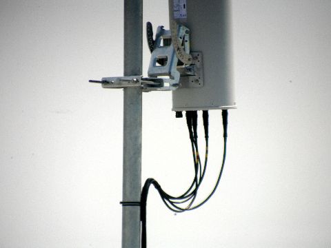 600mm超望遠で撮影、アンテナ細部が見えるアンテナの細部を見ると業務用とはいえ何故か民生用の衛星アンテナ並みの簡単な角度調整器具が見える。 |