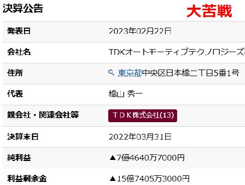 ホンダは日産との協業へ、東芝のTDK協業は大赤字ホンダは大きな遠回りをして結局は日産と協業の道へ踏み出した、それでもテスラには到底及ばないが。 東芝とTDKの2016年設立の協業会社は2022年度決算で大赤字のよう、その後の情報がなくもう解散・廃業? |