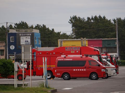 行方不明のサーファー操作続く昨夜はサイレンを鳴らした緊急車が多数走ってきたが、公園の駐車場には多数の緊急車両。 朝から捜索するヘリコプターが海岸沿いを行ったり来たり、でも見つからないようで夕方には帰っていった。 |