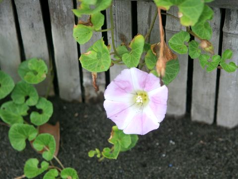 浜昼顔は真っ盛り夕方から雨との予報で早めに散歩に出かけたが暑い暑い、浜昼顔は花が開いていて綺麗。 |