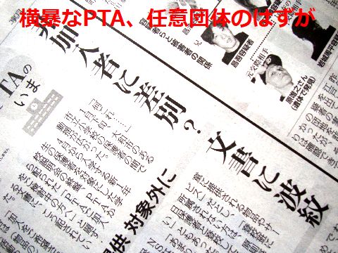 意地悪なPTAが問題に任意加入のはずのPTAが非加入者の子供に意地悪をして問題に、集団登校に入れないとかイジメでしかない。 学校側は慌てて対応する。わがマンションでもほぼ全ての業務は管理組合が行い、自治会は ほぼ娯楽担当。会費の徴収など 無料で管理組合に寄生状態。以前から問題になっていたが全員加入だからと見過ごされてきた、昨年任意加入が再確認され、 我が家は非加入に。建前で自治会が配る市の広報が配布なしに、実際に配っているのは管理組合なのが大いにオカシイ。 |