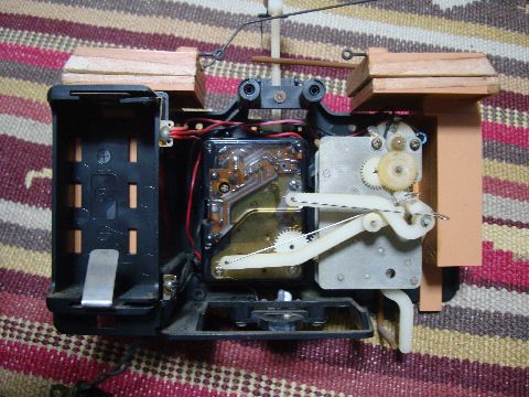 まあまあの出来かケーブルの引き出し部はケースの上下の部分に隙間を作り引き出し、電源側は下部ケースに大き目の 長円の穴を空けて通した。 |