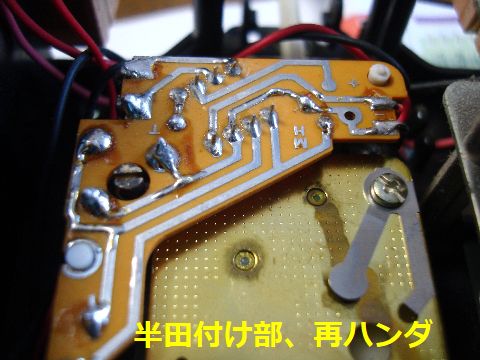 全半田部を再ハンダして復旧したもう一度分解し、時計部の基板(フェノールの片面基板)の半田付け所を全て半田コテで再加熱してクラック除去を実施。 その後一応動いているので様子見に、この時計はジャンクとして(振り子や飾りが一部ない)2010年12月に1円で落札したもの。 そろそろ寿命かとも思ったがまだまだ使えそう。 |