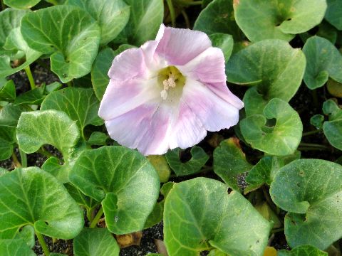 散歩の風景からもう浜昼顔のシーズンは終わりに近い様、花が非常に少なくなってきた。公園の休憩所には子供が置いて行った松ぼっくりが。 |