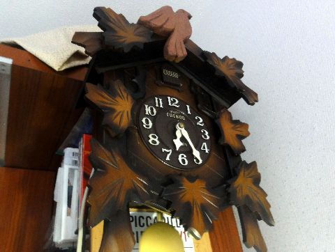 修理した鳩時計は大丈夫のよう半日以上経過したが時報も正しく鳴くし時間もほぼ正確、水晶発振回路のトリマを弄ったのでややズレているかも、修理は成功のよう。 |