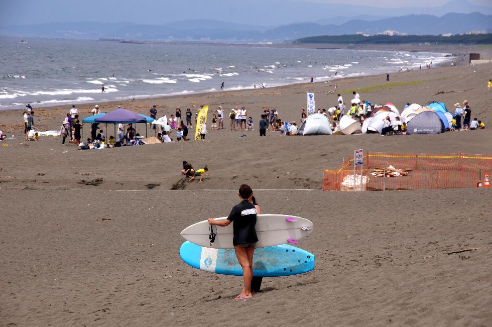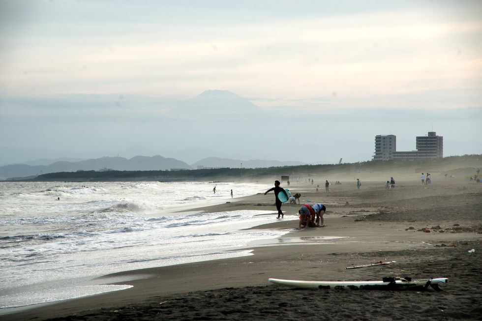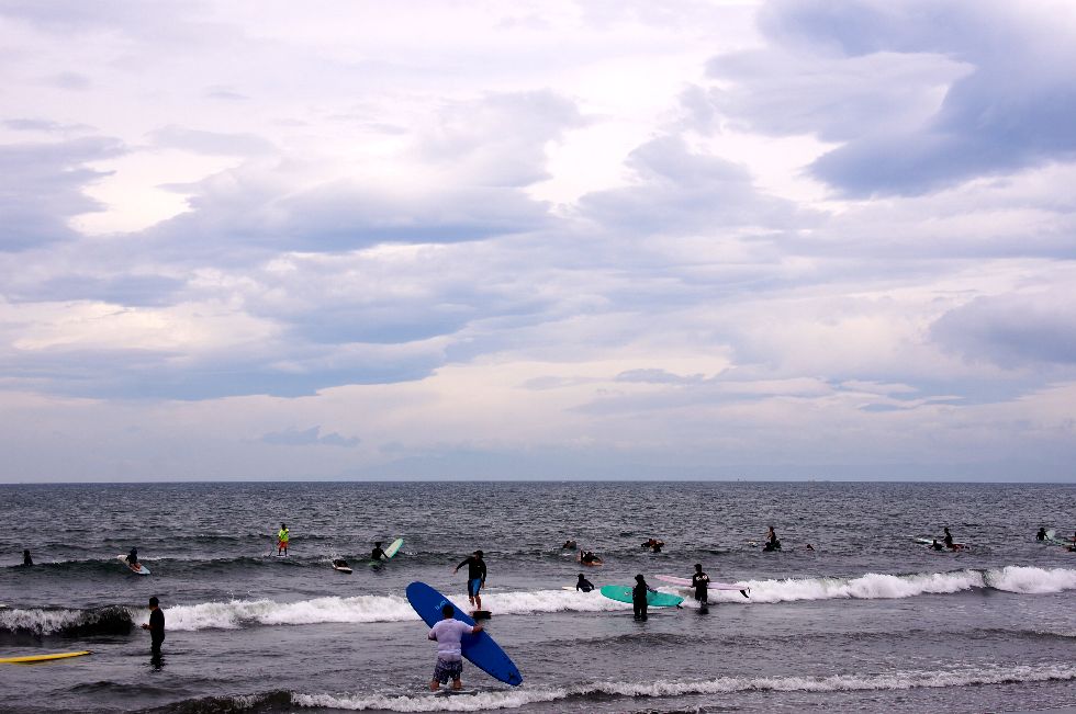 梅雨入り前の海岸は大賑わい梅雨入り前の晴れ間で子供連れが多数、ちびっこサーフィンスクールも開催、機材はSONY α900+MINOLTA 28-105mm Zoom |
