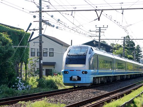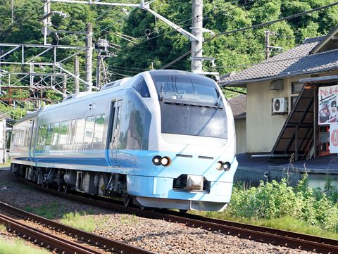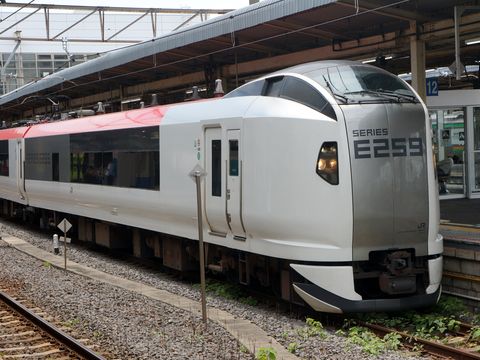 休日の臨時はE257系が殆どだが昔は臨時特急といえば185系ばかりだったが最近は廃車が近づいたせいか、E257系がほとんどとなった。 |