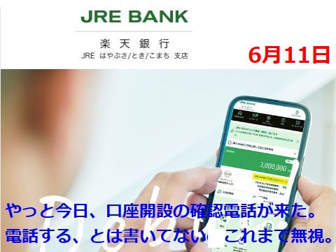 JREバンク、手続きが遅々として進まず5月21日にオンラインで口座開設を手続き後は「なしのつぶて」、勝手にスマホへ電話してきて出ないとメールが来た。 時間指定すると電話がやっと掛かってきて本人確認、これで手続きが進む? |