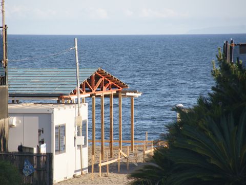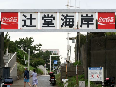 海開きが近づく、逗子では今日から辻堂海岸は海の家が一軒のみ、15日?から8月末までの営業のはず、今年は入口のオンボロだった看板の更新、海の家の一部を 鉄骨プレハブにして食品の調理・販売をするよう。監視員の小屋はまだ出来ていない。 |