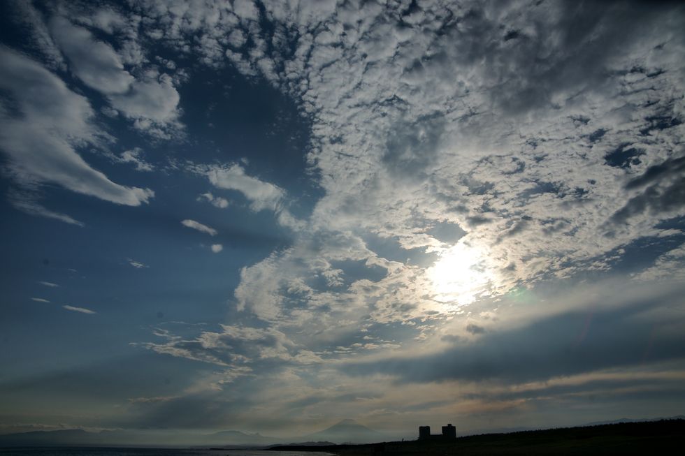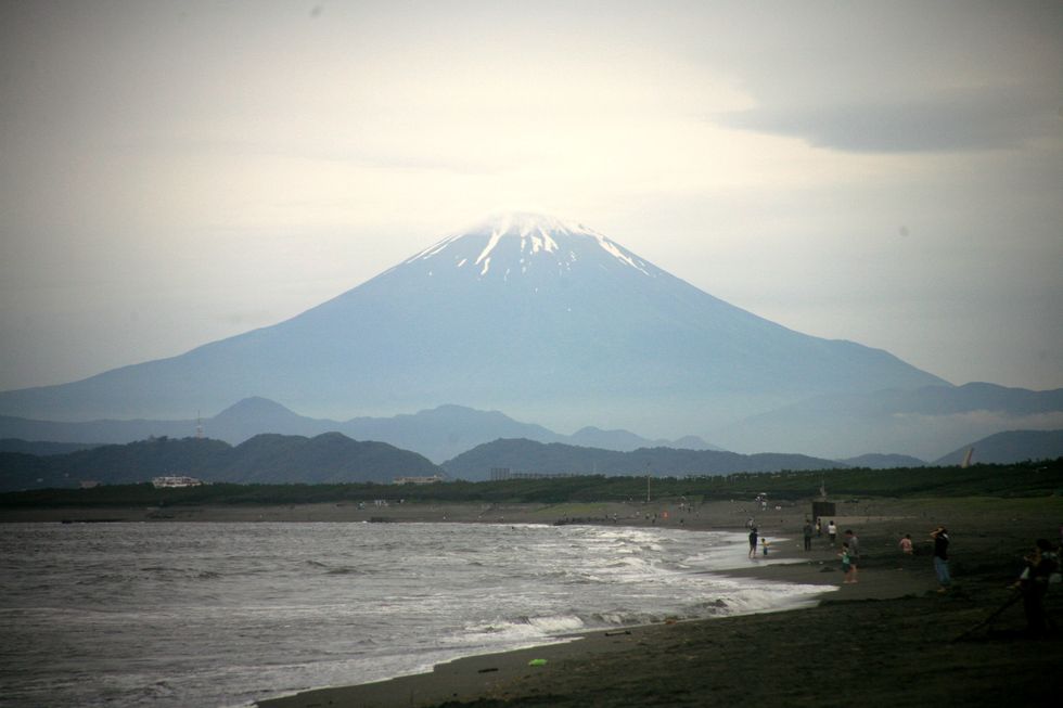 梅雨入り前の富士山と辻堂海岸天気予報が外れて綺麗な空になったのは午後も遅くなってから、富士山が何とか見えたが太陽が明るすぎて。 |