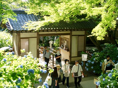 北鎌倉・明月院へ紫陽花を見に夕方は4時30分最終入場で5時閉門なので終了間際が比較的空いているとのことなので4時前入場を目標に出かけた。 3時半過ぎにE653系を沿線で撮影し明月院へ。中央の通路は人が多く混雑が多い、それでも以前の時の様に渋滞して進めない という事はなかった。 |