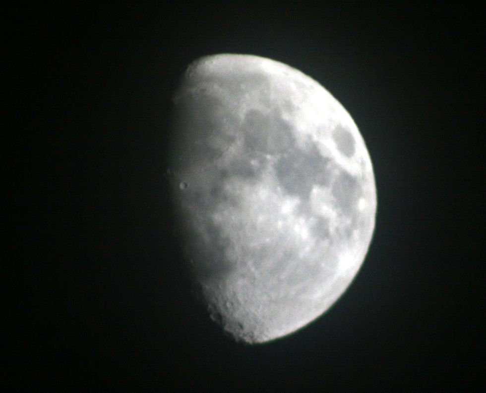 超望遠レンズで月を撮影やや薄雲が掛かっている、機材はCANON EOS30D+超望遠1200mm*1.5、露出:f14.9、1/125秒。 |