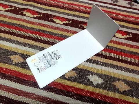 こちらのブックエンドはアンテナ基台に加工予定ホイップアンテナ(磁石基台付き)をベランダの手すり上に設置する台に加工して使う予定。長い辺を手摺の幅に曲げて 固定する方法で利用予定、アンテナ基台は強力磁石で固定。 |