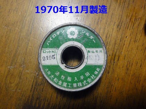 長い間ごくろうさんの半田何と1970年製造、太目なのでその後細いものを追加で買って使ってきたので長持ちした? 製造会社はもう無くなっているよう。 |